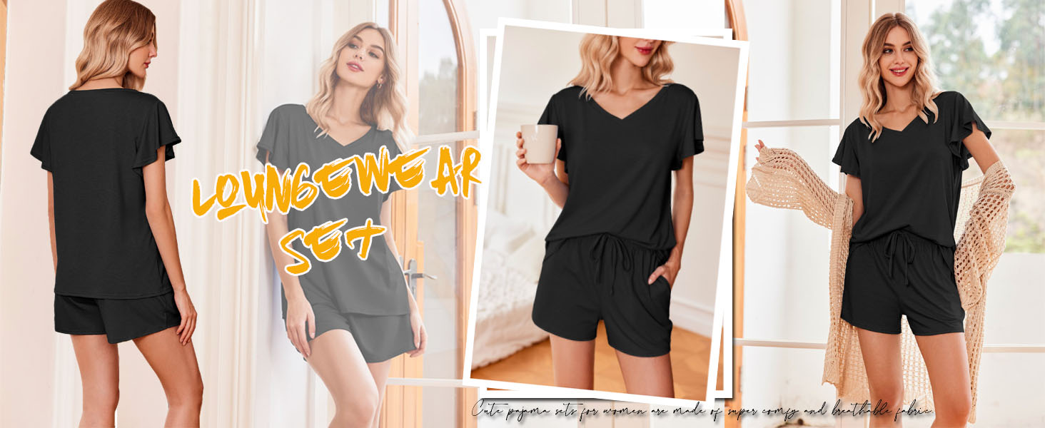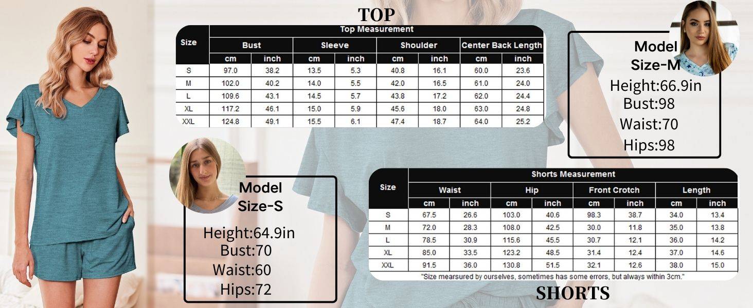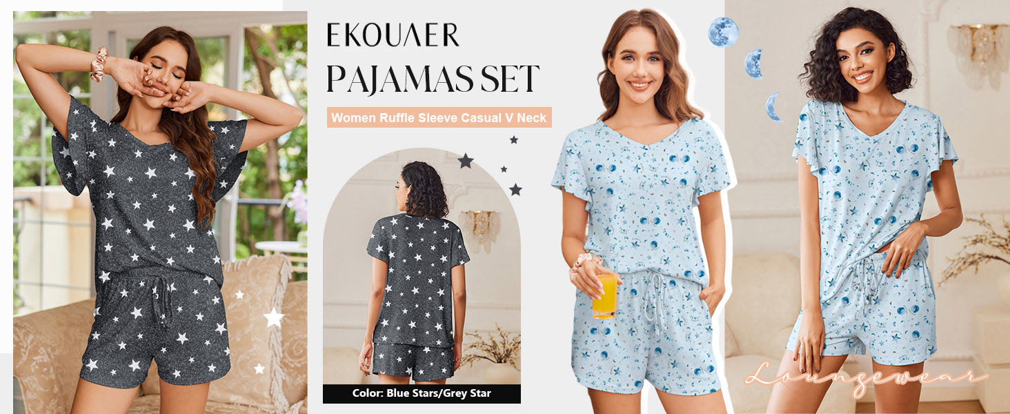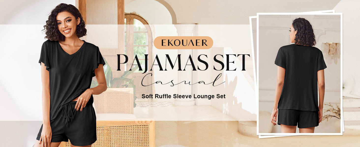 Ekouaer Women's Pajamas Set Ruffle Sleeves Sleepwear V Neck Comfy 2 Piece Pjs Loungewear Set with Pockets