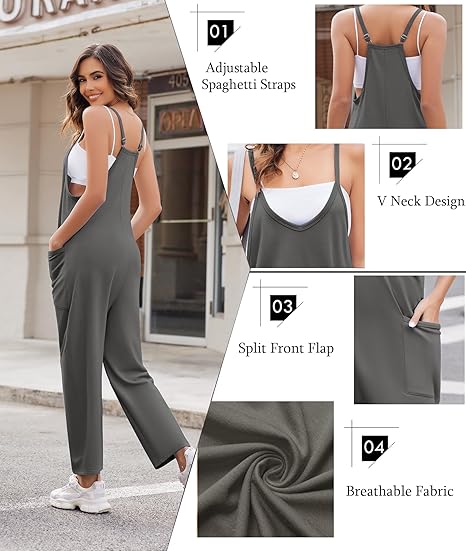 Ekouaer Womens Sleeveless Jumpsuit Loose Spaghetti Strap Baggy Overalls Jumpers Casual Long Pants Rompers with Pockets 2025