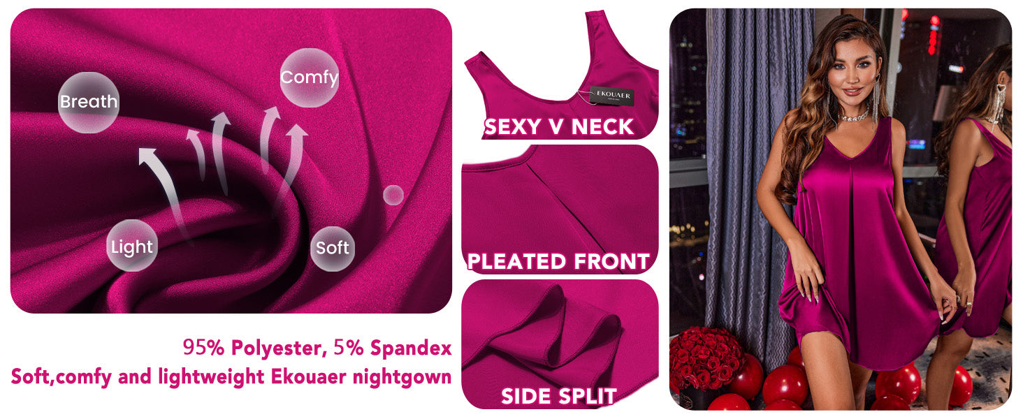 Ekouaer Women's Sleeveless V Neck Satin Nightgown Navy Blue M
