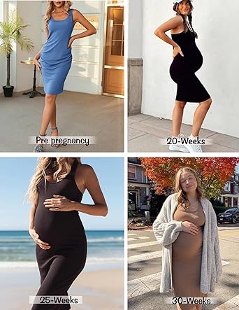 Ekouaer Womens Summer Maternity Dress Side Ruching Sleeveless Bodycon Dress Cute Pregnancy Dress