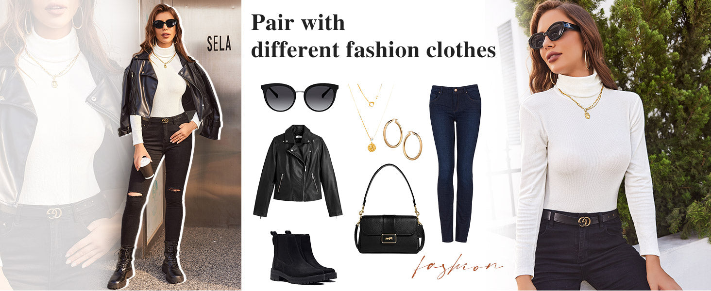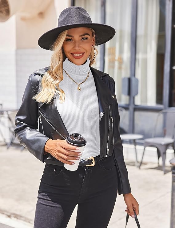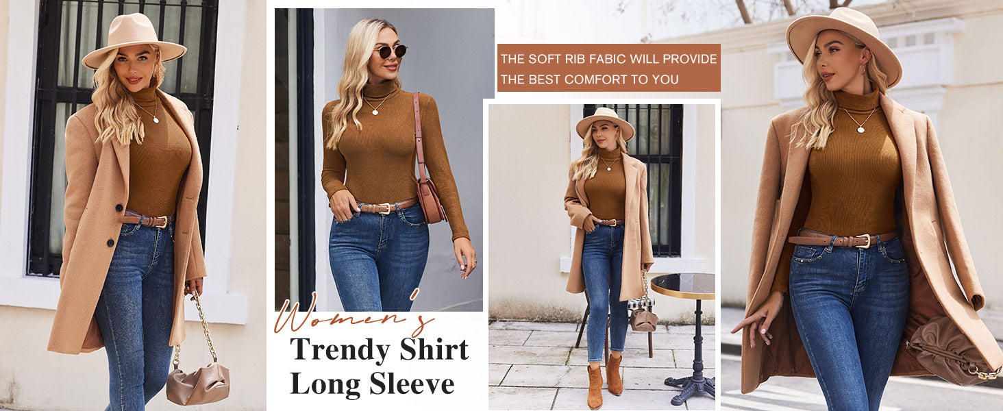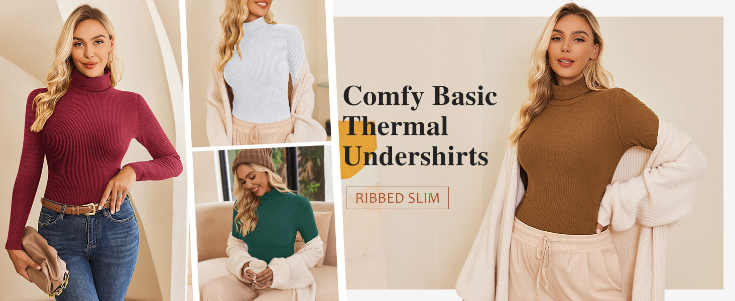 Ekouaer Women's Turtleneck Tops Ribbed Pullover Sweater Long Sleeves Shirts Midweight Thermal Underwear Blouse